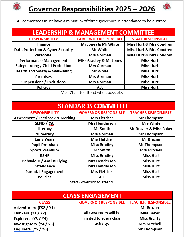 This page is designed to give you an overview of the school's governance arrangements and includes links to information on the Governing Board and details of all Governors. This page will be updated regularly, to summarise activities and developments; some elements will give a brief review of decisions, visits and other activities undertaken.
