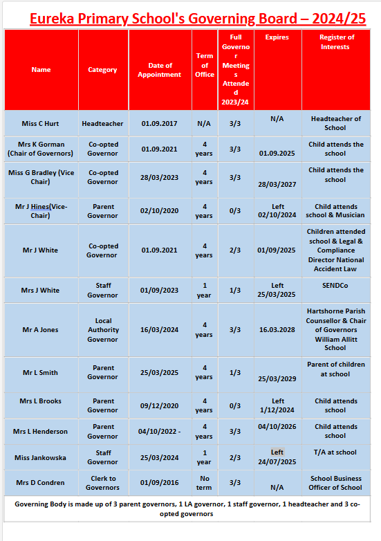 and email : chairofgovernors@eureka.derbyshire.sch.uk